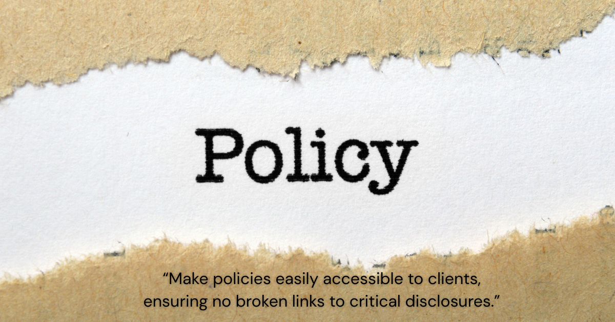 Compliance Action: Conduct a broken link audit monthly. An inaccessible policy is considered a failure to disclose.